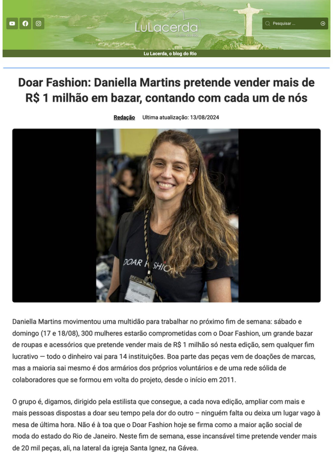 Creditamos o sucesso do evento Doar Fashion 2024 ao trabalho de assessoria de estratégia de comunicação e divulgação na mídia da Multifato e divulgação da Eletromídia nos elevadores de edifícios comerciais e residenciais da Zona Sul do Rio de Janeiro . E, por ultimo mas não menos importante, ao talento e criatividade do nosso incrível Time Voluntário de Mídia.