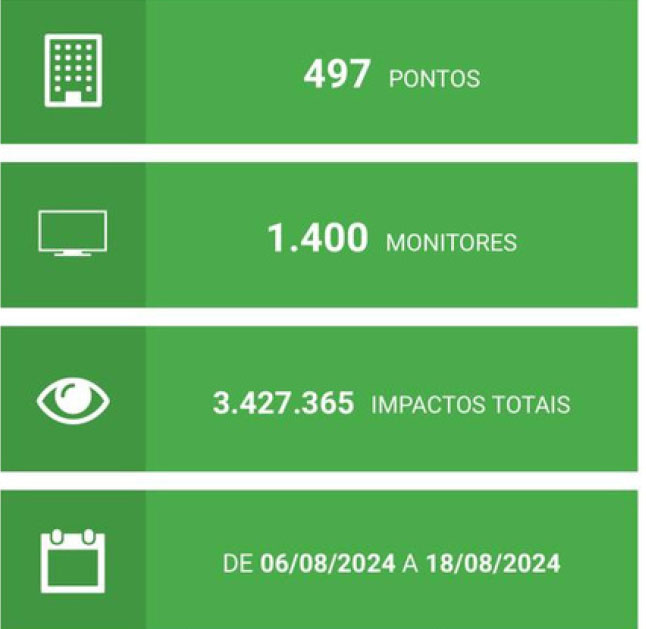 - Veiculação de vídeo institucional nos elevadores de prédios comerciais e residenciais na Zona Sul do RJ nos 15 dias precedentes ao evento. (Eletromídia)