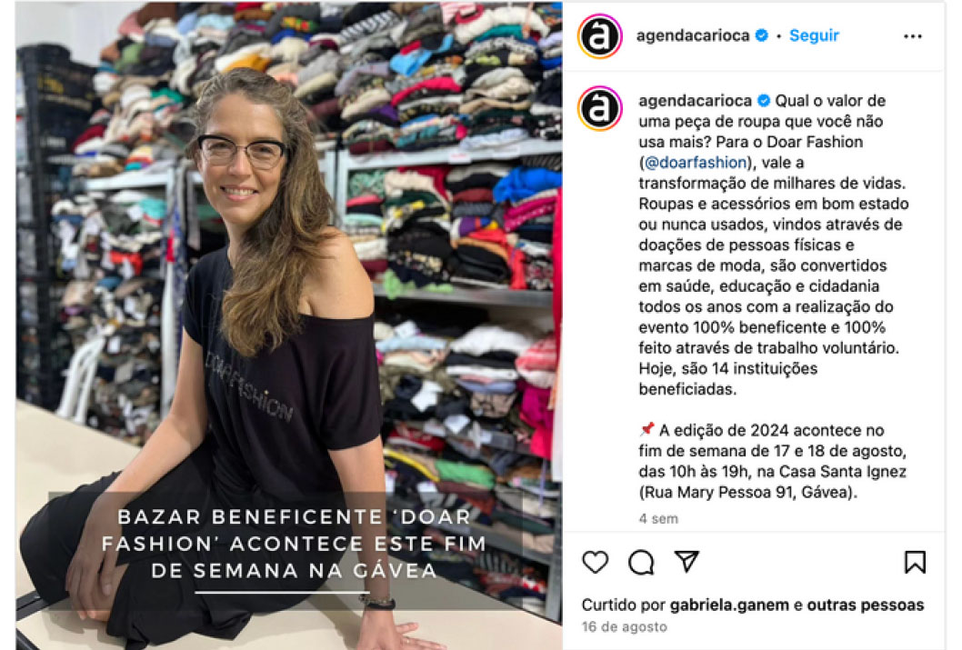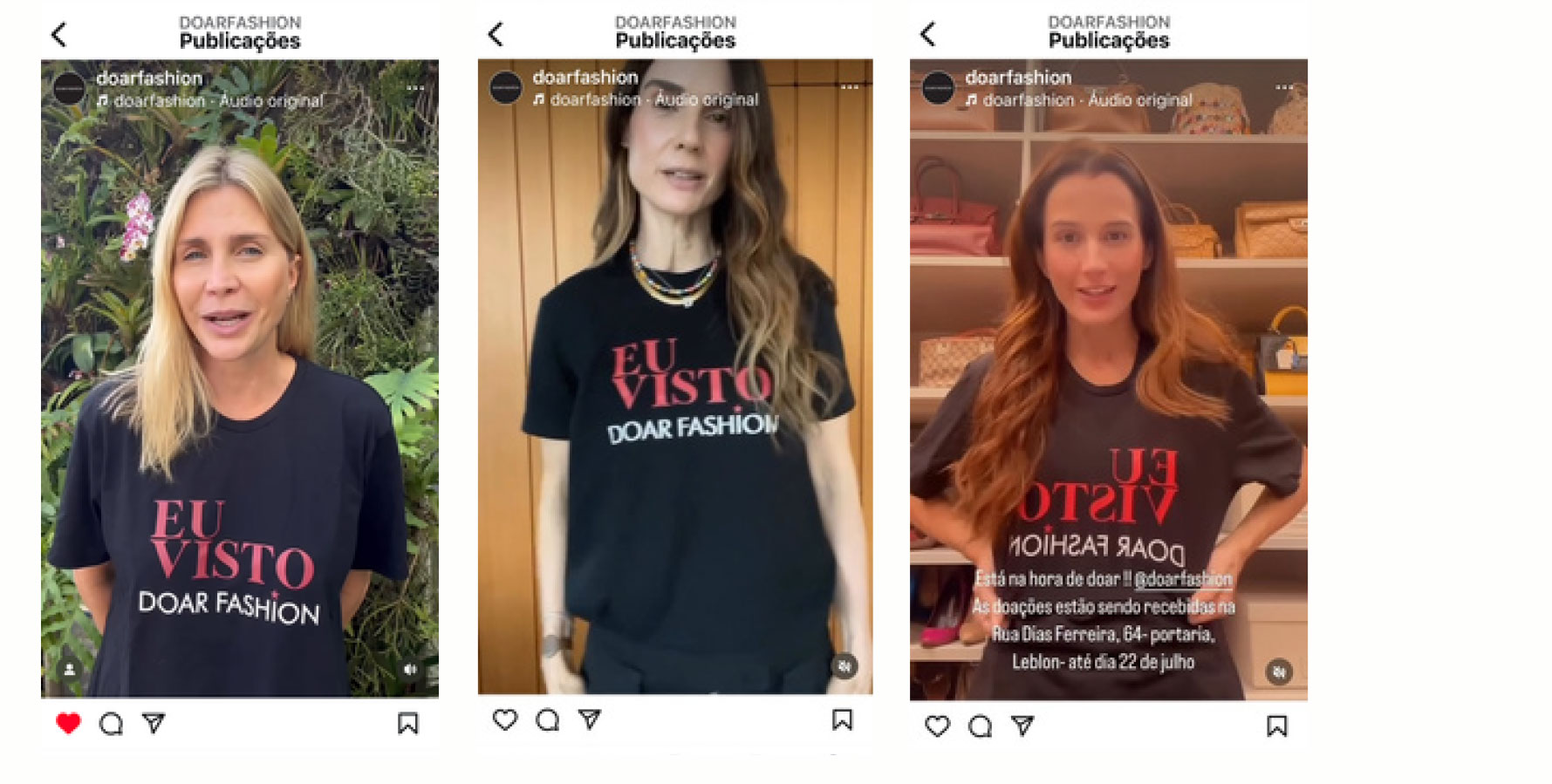 - Campanha no instagram “EU VISTO DOAR FASHION” onde influenciadoras explicavam o evento e pediam doações aos seguidores